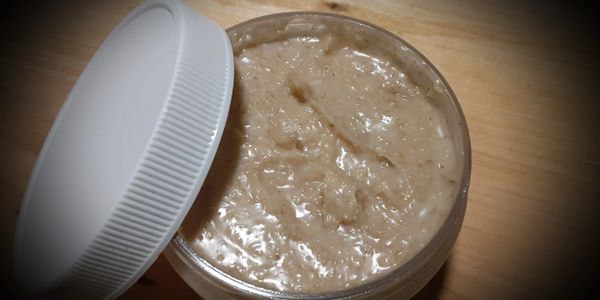 The body scrub (pictured above) is a fine exfoliating all over body scrub made from fine ground oats, coconut oil, sweet almond oil, spearmint and eucalyptus essential oils. This body scrub is one of my favorites because it gently exfoliates your skin leaving it feeling silky and smooth.